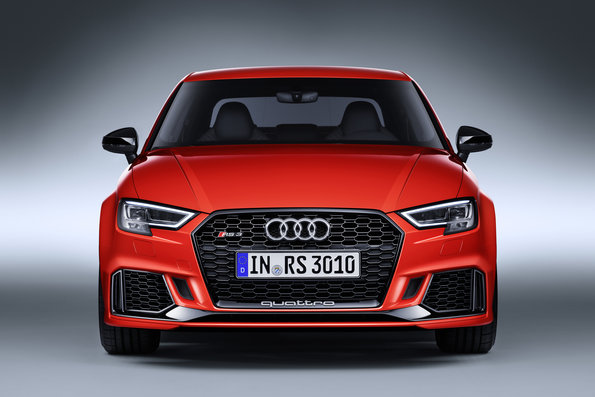Nový vrcholný sportovní model v kompaktním segmentu dává najevo svůj sportovní charakter také vizuálně. Maska chladiče Singleframe s trojrozměrnou voštinovou mřížkou nese ve spodní části nápis quattro. Pod ním je v celé šířce přídě ozdobná lišta, zasahující až do bočních otvorů pro přívod vzduchu. Zde dává otvorům tvar trychtýře, který vylepšuje proudění vzduchu podběhy kol. Světlomety LED s výrazným charakteristickým tvarem světel pro denní svícení jsou součástí sériové výbavy. Na přání dodává Audi světlomety s technologií Matrix LED.