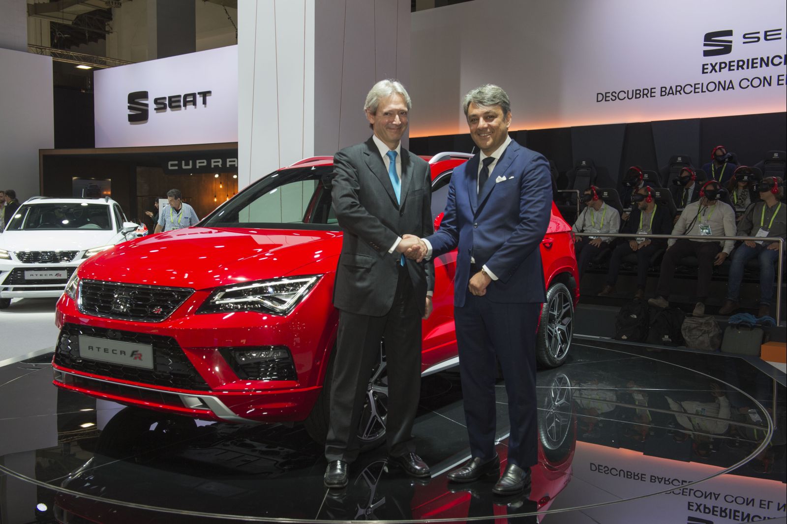 Španělská značka vystavuje ve své hlavní expozici nové modely Ateca FR, Ibiza a Leon Cupra. Společnost jim dělá působivý simulátor, v němž si mohou zájemci vyzkoušet SEAT ID. Tato brána do digitálního „ekosystému“ značky poskytuje různé služby v oblasti mobility. Mezi ně patří například prognózy stavu dopravy v reálném čase, doporučení trasy (restaurace, obchody, služby, atd.) a návrhy v závislosti na změnách denního programu řidiče. Přítomnost značky SEAT v této zóně je završena studií, která je vzpomínkou na SEAT 600, motocyklem Ducati, pohárem Copa del Rey a systémem rozšířené reality 4D.