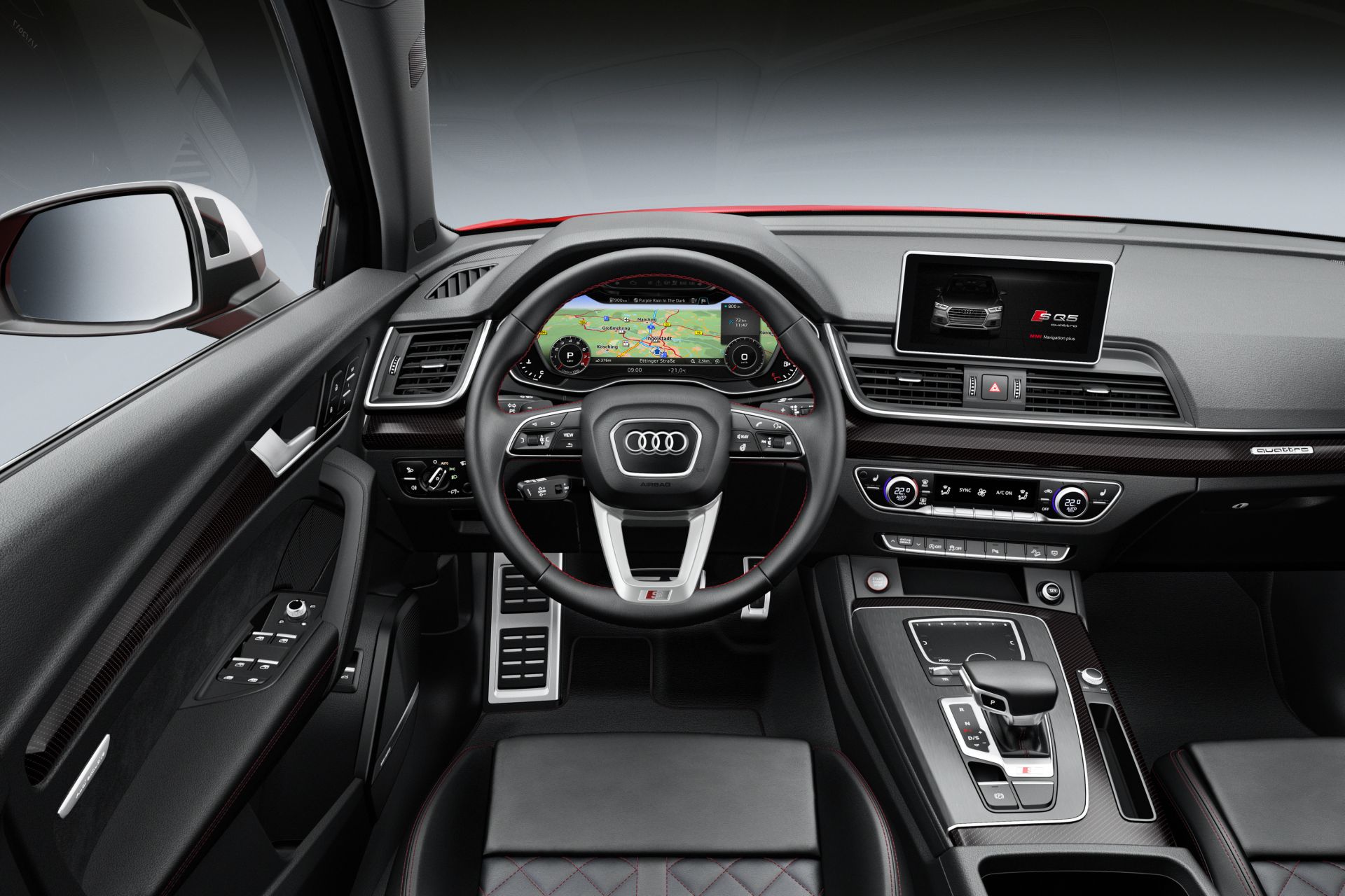 Logika ovládání MMI s nízkými hierarchiemi odpovídá aktuálním chytrým telefonům a nabízí mimo jiné inteligentní textové vyhledávání. Hlasové ovládání zpracovává také pokyny pronášené hovorovou řečí. Roli třetí, doplňkové úrovně ovládání plní v novém Audi SQ5 kůží obšitý multifunkční volant. Na přání dodává Audi nově vyvinutý průhledový displej, který promítá důležité informace, včetně pokynů od asistenčních systémů, v podobě rychle pochopitelných symbolů a číslic na čelní okno.